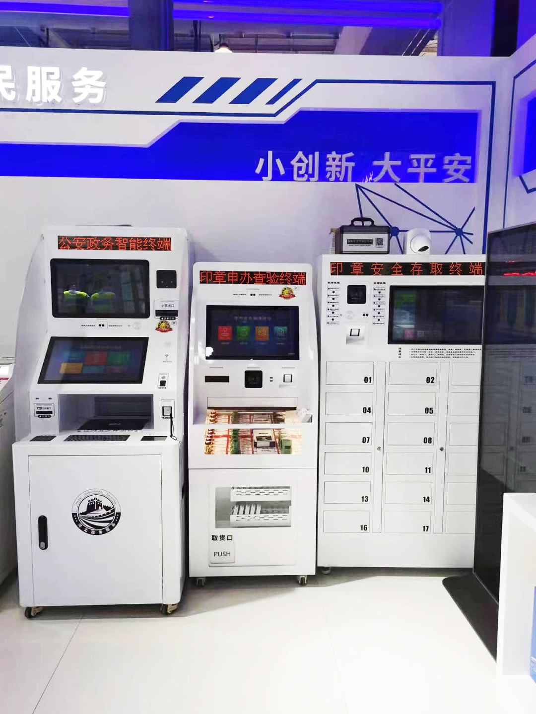 ? ? ? ?第11屆中國國際警用裝備博覽會于5月11日至14日在北京首鋼會展中心舉行。保定市公安局?jǐn)y與河北戈德防偽科技有限公司共同創(chuàng)新研發(fā)的智慧政務(wù)自助終端系列產(chǎn)品亮相民警發(fā)明創(chuàng)造裝備展區(qū),是河北省唯一參加此板塊的公安政務(wù)服務(wù)設(shè)備,同時此設(shè)備曾獲得2021年公安部和中華全國總工會共同舉辦的“智慧公安我先行”公安基層技術(shù)革新專項(xiàng)活動全國“二等獎”。其中,“公安政務(wù)智能終端”、“印章申辦查驗(yàn)終端”、“印章安全存取終端”中多項(xiàng)便民服務(wù)創(chuàng)新成果引起了各級公安機(jī)關(guān)領(lǐng)導(dǎo)及專家的高度關(guān)注和充分認(rèn)可。