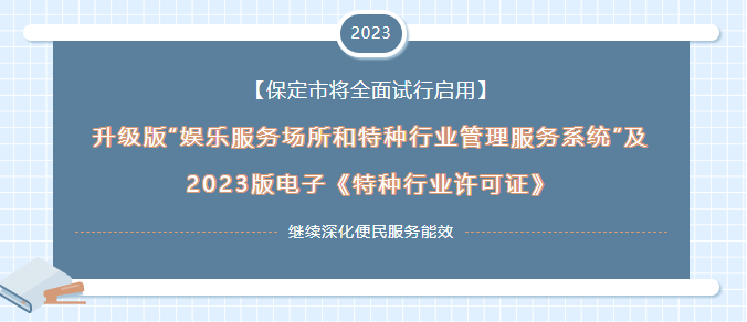 2023年4月,河北省公安廳在《關(guān)于進(jìn)一步強(qiáng)化行業(yè)場(chǎng)所新業(yè)態(tài)陣地控制持續(xù)優(yōu)化營(yíng)商環(huán)境的通知》文件中,強(qiáng)調(diào)了要進(jìn)一步深化行業(yè)場(chǎng)所“放管服”改革,優(yōu)化審批、備案流程環(huán)節(jié),有效提升事中事后監(jiān)管水平,全面落實(shí)“一窗通辦”、網(wǎng)上審批、電子證照的改革和應(yīng)用等舉措。為全面貫徹省委、省政府和省公安廳關(guān)于加強(qiáng)行業(yè)場(chǎng)所新業(yè)態(tài)陣地控制、優(yōu)化特種行業(yè)審批備案和推行“一網(wǎng)通辦”制度改革等系列部署要求,11月15日下午,保定市公安局治安管理支隊(duì)組織召開了全市治安部門“娛樂服務(wù)場(chǎng)所和特種行業(yè)管理服務(wù)系統(tǒng)升級(jí)操作培訓(xùn)會(huì)”。