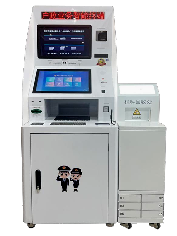 戶政業(yè)務(wù)智能終端本著安全性、高效性、可擴(kuò)展性的研發(fā)目標(biāo),針對(duì)傳統(tǒng)戶籍業(yè)務(wù)辦理過(guò)程中“時(shí)間受限、地點(diǎn)受限”從而導(dǎo)致辦事群眾請(qǐng)假跑、異地跑、多次跑、來(lái)回跑等痛點(diǎn)、難點(diǎn)、堵點(diǎn)問(wèn)題進(jìn)行設(shè)計(jì)。辦事群眾可省去窗口排隊(duì)時(shí)間,就近選擇投放了該智能設(shè)備的政務(wù)服務(wù)中心、24小時(shí)自助服務(wù)區(qū)、黨群服務(wù)中心、街道辦(鄉(xiāng)鎮(zhèn))、警務(wù)站、銀行、社區(qū)、大學(xué)校園、大型商超等,隨時(shí)、隨地、自助、在線辦理高頻戶政服務(wù)項(xiàng)目。該智能終端具有網(wǎng)上自助申報(bào)、民警在線受理、跨區(qū)就近領(lǐng)取的智能化便民服務(wù)模式,并可實(shí)現(xiàn)材料回收、戶口頁(yè)及相關(guān)證明自助打印、自動(dòng)統(tǒng)計(jì)建檔、辦理進(jìn)度查詢等配套的業(yè)務(wù)辦理及服務(wù)功能。另外,監(jiān)管服務(wù)人員可通過(guò)24小時(shí)高清攝像頭實(shí)時(shí)監(jiān)控或追溯業(yè)務(wù)辦理情況。