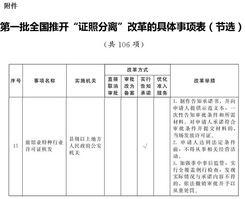 附件:第一批全國(guó)推開(kāi)“證照分離”改革的具體事項(xiàng)表