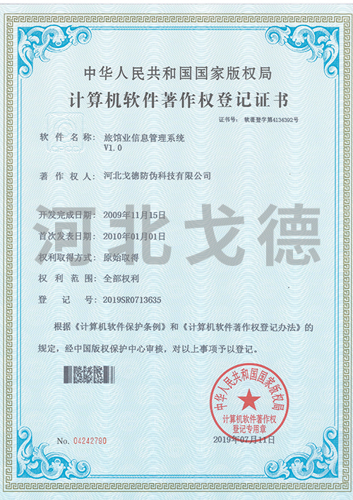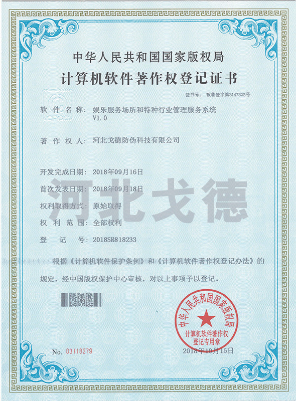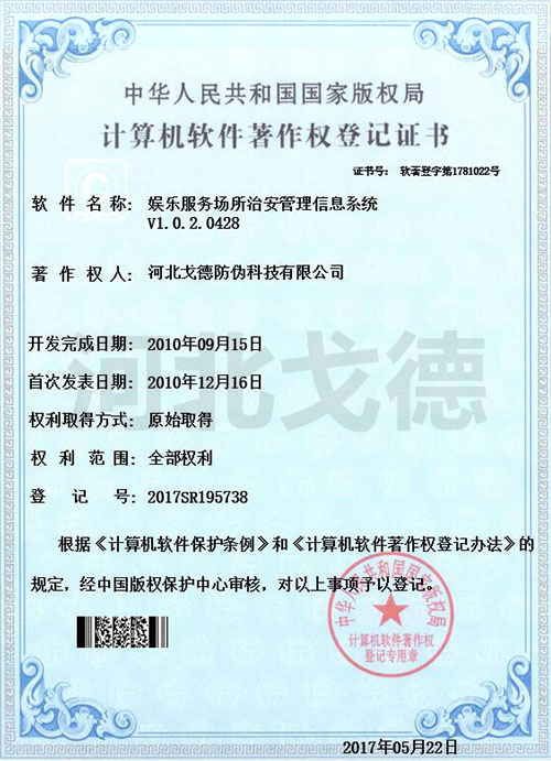 娛樂場所服務(wù)信息系統(tǒng)軟著證書