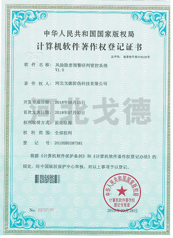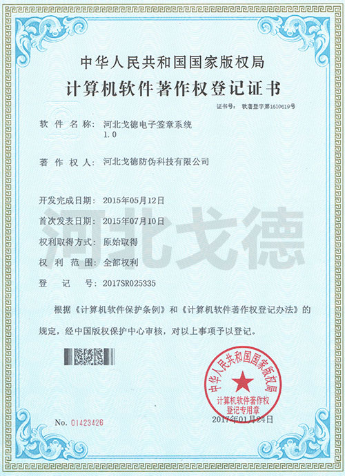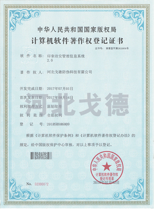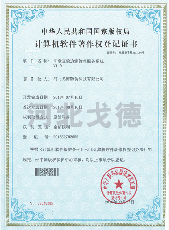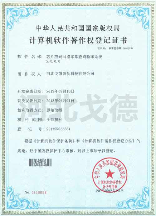 印章備案追溯系統(tǒng)發(fā)明專利證書