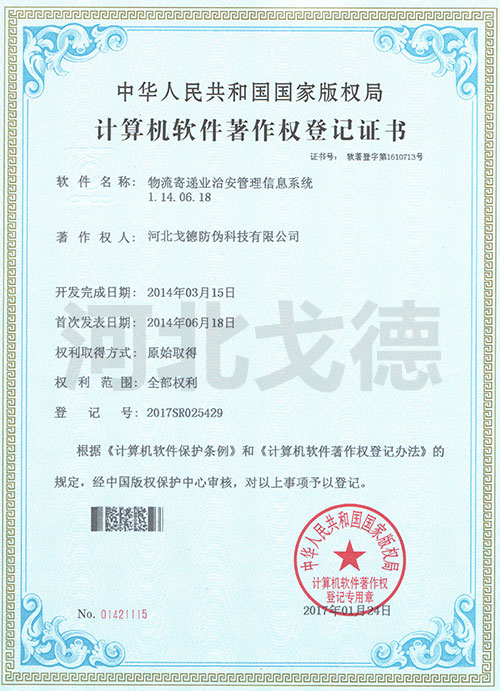 物流寄遞業(yè)信息系統(tǒng)軟著證書