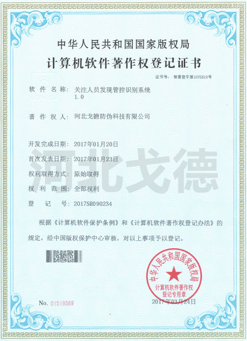 關(guān)注人員管控識別系統(tǒng)軟著證書