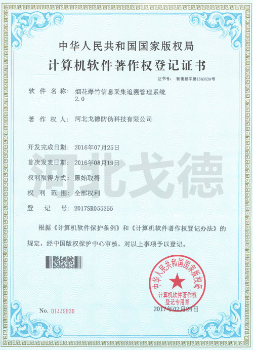 煙花爆竹信息采集系統(tǒng)軟著證書