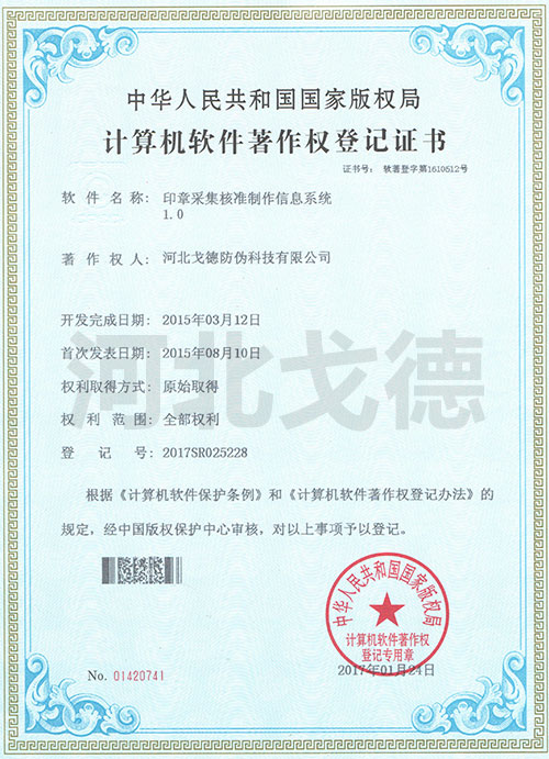 印章采集核準(zhǔn)制作系統(tǒng)軟著證書